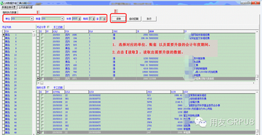 1. 选择对应的单位、账套以及需要升级的会计年度期间。