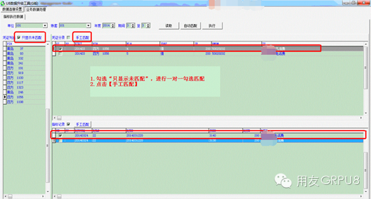 4.自动匹配完成后,勾选“只显示未匹配”,手工对报销单相应凭证进行匹配。