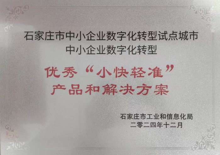 而在2024年,河北鸿图伟创更是荣获了石家庄市中小企业数字化转型试点城市中小企业数字化转型优秀“小快轻准”产品和解决方案的称号。这一荣誉的获得,充分体现了石家庄市工业和信息化局对河北鸿图伟创在数字化转型服务方面的高度认可。石家庄市作为中小企业数字化转型试点城市,一直在积极探索和实践中小企业数字化转型的有效路径。河北鸿图伟创的优秀“小快轻准”产品和解决方案,为石家庄市中小企业数字化转型提供了有力的支持,也为其他地区提供了可借鉴的经验和模式。