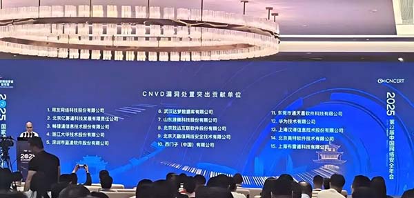 据石家庄用友软件了解,9月16日,在2025年国家网络安全宣传周期间,第22届中国网络安全年会于昆明滇池国际会展中心隆重开幕。会上,国家计算机网络应急技术处理协调中心正式公布了“2024年度国家信息安全漏洞共享平台(CNVD)优秀支撑单位”名单。