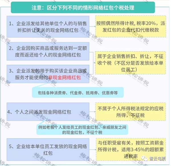 注意:微信、支付宝发红包有时也要缴纳个税,区分下列不同的情形网络红包个税处理,具体如下: