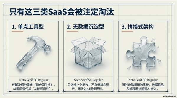 必须承认,AI时代会有SaaS被淘汰,但被淘汰的不是赛道,而是三类没有结构壁垒的产品——它们的核心缺陷,正是AI最擅长替代的领域。