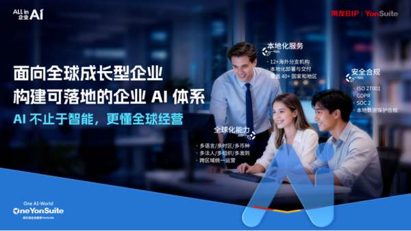 而YonSuite,正是用友面向成长型企业的核心载体——它不是轻量工具,而是一套一体化、AI原生的数智平台。如今,中国企业大规模“走出去”,东南亚、中东等市场,迫切需要一套既能理解中国经营逻辑,又能适配全球合规标准的平台,YonSuite的“One Global Operation”(全球运营一体化),正是对这一需求的精准回应。